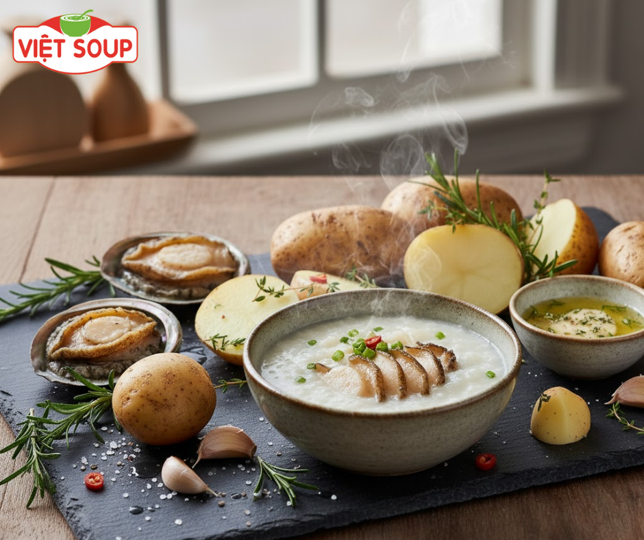 Hình 3: Kết hợp bào ngư và khoai tây, cháo bào ngư Việt Soup mang đến bữa ăn vừa ngon miệng vừa giàu dưỡng chất cho bé yêu