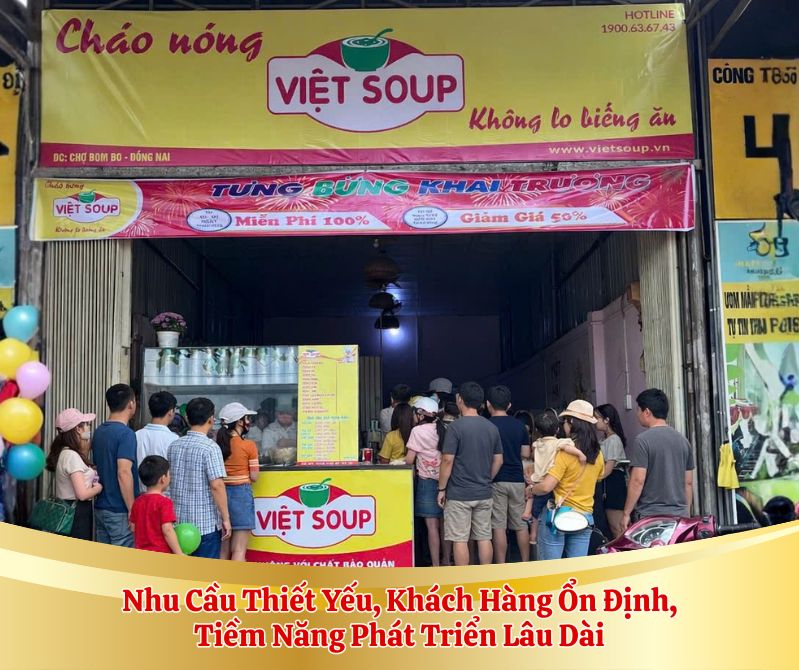 Trước khi quyết định đầu tư, điều quan trọng không chỉ là số vốn ban đầu mà là bạn đang chọn đồng hành cùng mô hình nào trong dài hạn. Một mô hình có định hướng rõ ràng, có chiến lược phát triển cụ thể và mang lại lợi ích thực tế cho đối tác sẽ giúp hành trình kinh doanh bớt rủi ro hơn rất nhiều. Với Việt Soup, hệ thống cửa hàng cháo dinh dưỡng cho bé được xây dựng trên nền tảng thương hiệu đã có chỗ đứng nhất định trên thị trường, cùng tệp khách hàng ổn định tại nhiều khu vực. Đây là lợi thế giúp nhà đầu tư rút ngắn thời gian xây dựng niềm tin và nhanh chóng đưa cửa hàng vào quỹ đạo hoạt động.