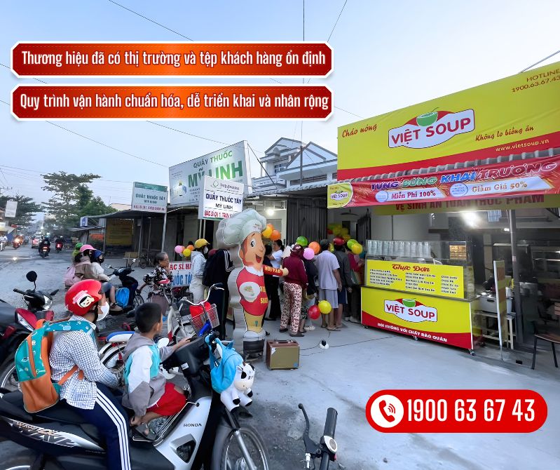 Thay vì tự loay hoay chuẩn bị mọi thứ từ đầu, bỡ ngỡ khi bắt tay vào vận hành và phải tự rút kinh nghiệm qua từng sai sót, nhiều nhà đầu tư lựa chọn hình thức nhượng quyền để có một lộ trình rõ ràng hơn. Việt Soup phát triển theo hướng đồng bộ, minh bạch và có sẵn quy trình cụ thể, giúp người mới bắt đầu tự tin hơn khi triển khai mô hình kinh doanh.