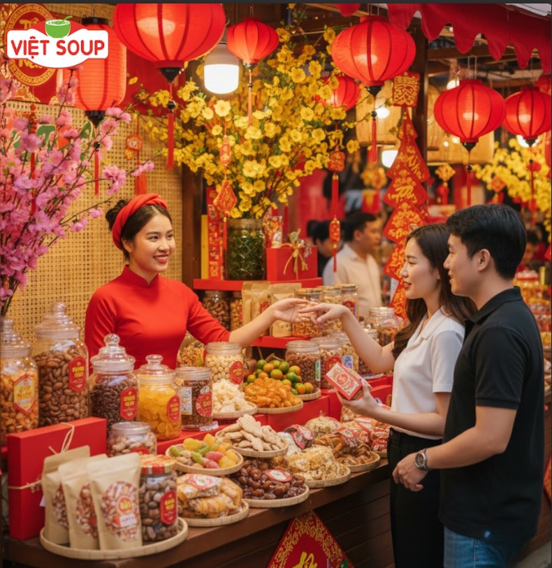 Bán các loại bánh, mứt và thực phẩm khô là lựa chọn lý tưởng cho những ai muốn kinh doanh vốn ít dịp Tết. Các mặt hàng này dễ bảo quản, không lo hư hỏng nhanh, mẫu mã đa dạng và nhu cầu mua làm quà biếu, đãi khách tăng mạnh vào cuối năm. Bạn chỉ cần nhập số lượng vừa phải, chụp hình sản phẩm đẹp mắt và bán qua mạng xã hội là đã có thể thu lợi nhuận tốt mà không cần tốn nhiều chi phí đầu tư.