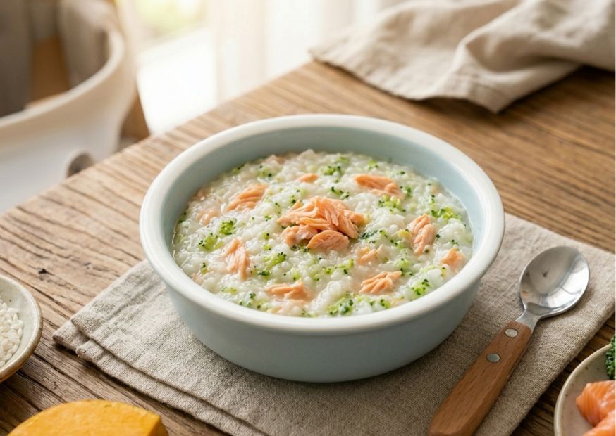 2. Công thức cháo dinh dưỡng cá hồi bông cải xanh – Giàu Omega-3