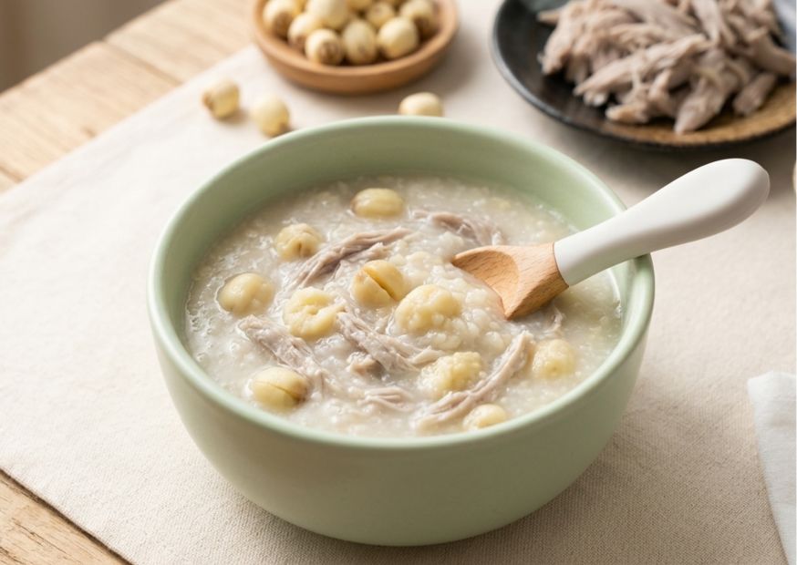 5. Công thức cháo dinh dưỡng gà ác hạt sen – Bồi bổ sau ốm