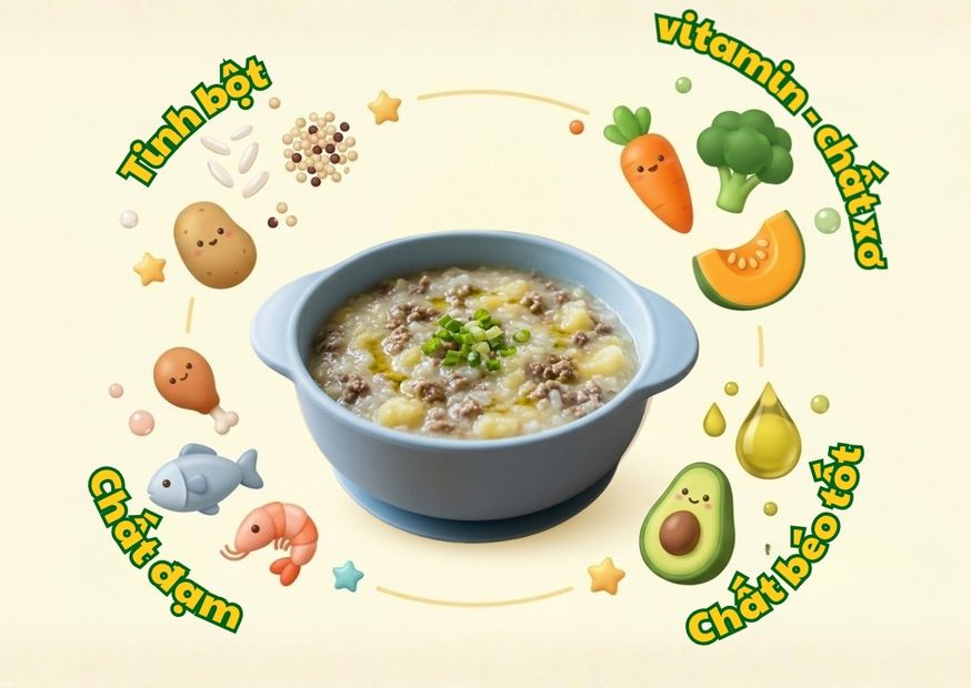 Việc khéo léo điều chỉnh công thức cháo dinh dưỡng theo từng độ tuổi không chỉ giúp bé ăn ngon miệng hơn mà còn là bài tập quan trọng để kích thích cơ hàm và phát triển khả năng nhai nuốt tự nhiên của trẻ.