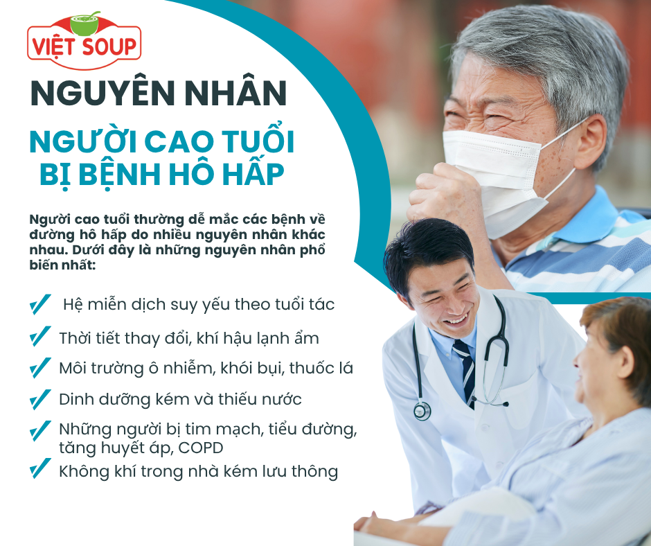 Khi tuổi tác tăng, sức đề kháng và hệ hô hấp suy yếu, khiến virus, vi khuẩn dễ tấn công, đặc biệt trong thời tiết ẩm lạnh. Những thay đổi theo thời gian khiến phổi và cơ hô hấp hoạt động kém hiệu quả, tăng nguy cơ viêm phế quản, viêm phổi hay cảm cúm kéo dài.