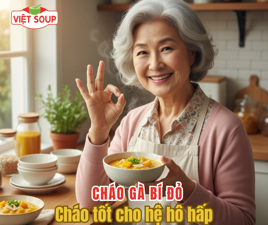 Thịt gà cung cấp năng lượng, giúp cơ thể phục hồi nhanh; bí đỏ lại chứa nhiều vitamin A và chất chống oxy hóa, giúp bảo vệ niêm mạc hô hấp. Chính vì vậy, món cháo này được xem là cháo dinh dưỡng tốt cho hô hấp, nhẹ bụng, dễ tiêu và đầy dưỡng chất cho người lớn tuổi.